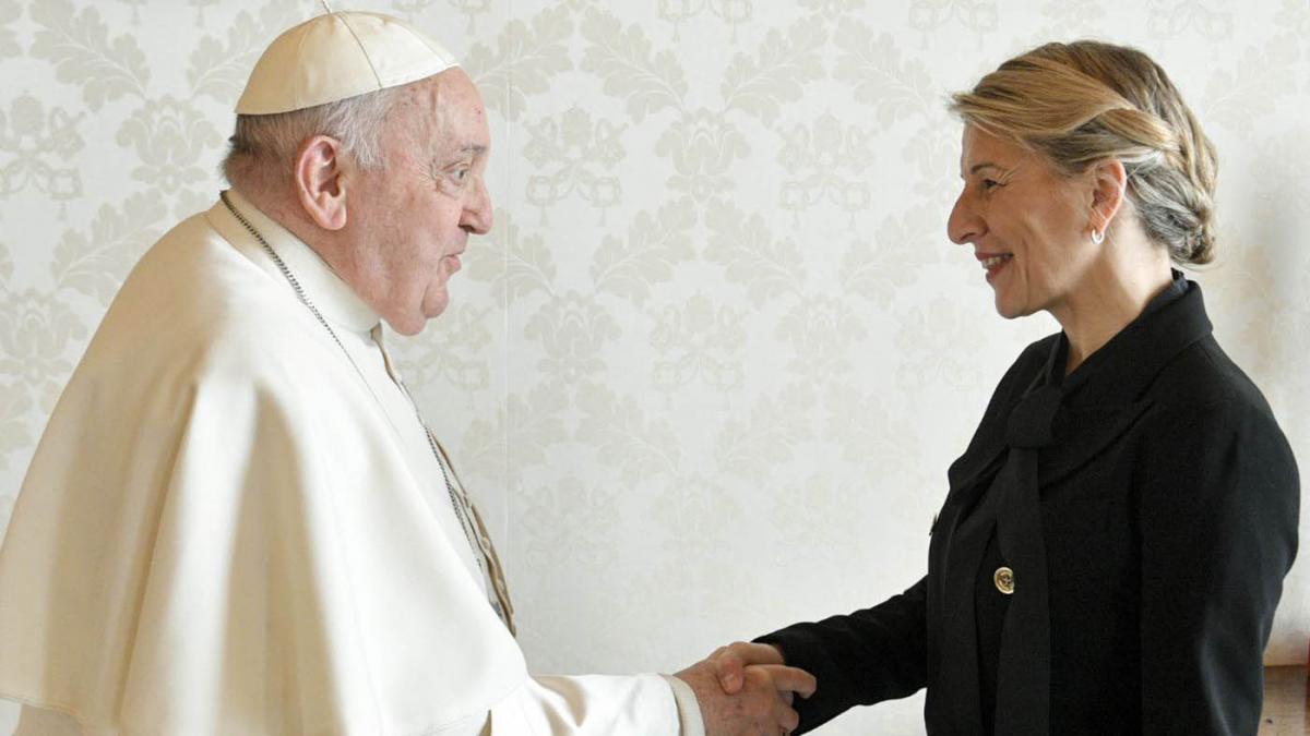 La vicepresidenta segunda del Gobierno de España, Yolanda Díaz, se reunió este viernes durante una hora con el papa Francisco en el Vaticano y lo calificó como “el mejor embajador del trabajo decente en el mundo”, tras un encuentro en el que hablaron de los “retos” de la humanidad, como las guerras, “la crisis ambiental sin precedentes”, de la “necesidad” de reformar los organismos internacionales y de la posible visita del pontífice a Canarias.