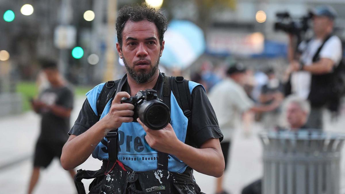 Varios trabajadores de prensa, entre ellos dos fotoperiodistas de la agencia nacional de noticias Télam, fueron heridos este jueves con balas de goma durante la represión policial contra manifestantes en las inmediaciones del Congreso nacional mientras la Cámara de Diputados debatía la denominada ley “Bases”.